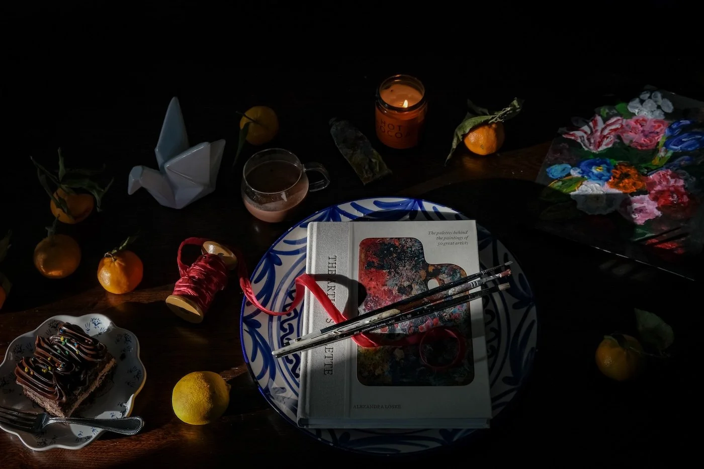 I’ve been a bit obsessed with artist’s palettes for some time. (Made a Pinterest board here). So I couldn’t resist checking out The Artist’s Palette by Alexandra Loske (pictured above). I like to just open a page and leave it on the coffee table so I can see all the colours as I walk by. Each palette is like a window into how the artist works. Frank Gibson is quoted as saying the painting of Henri Fantin-Latour is a “little vibrating touch of colour rubbed over masses of tone.” Rosa Bonheur says, “The eye is the way to the soul, and the crayon or brush must simply and faithfully render what you see.”