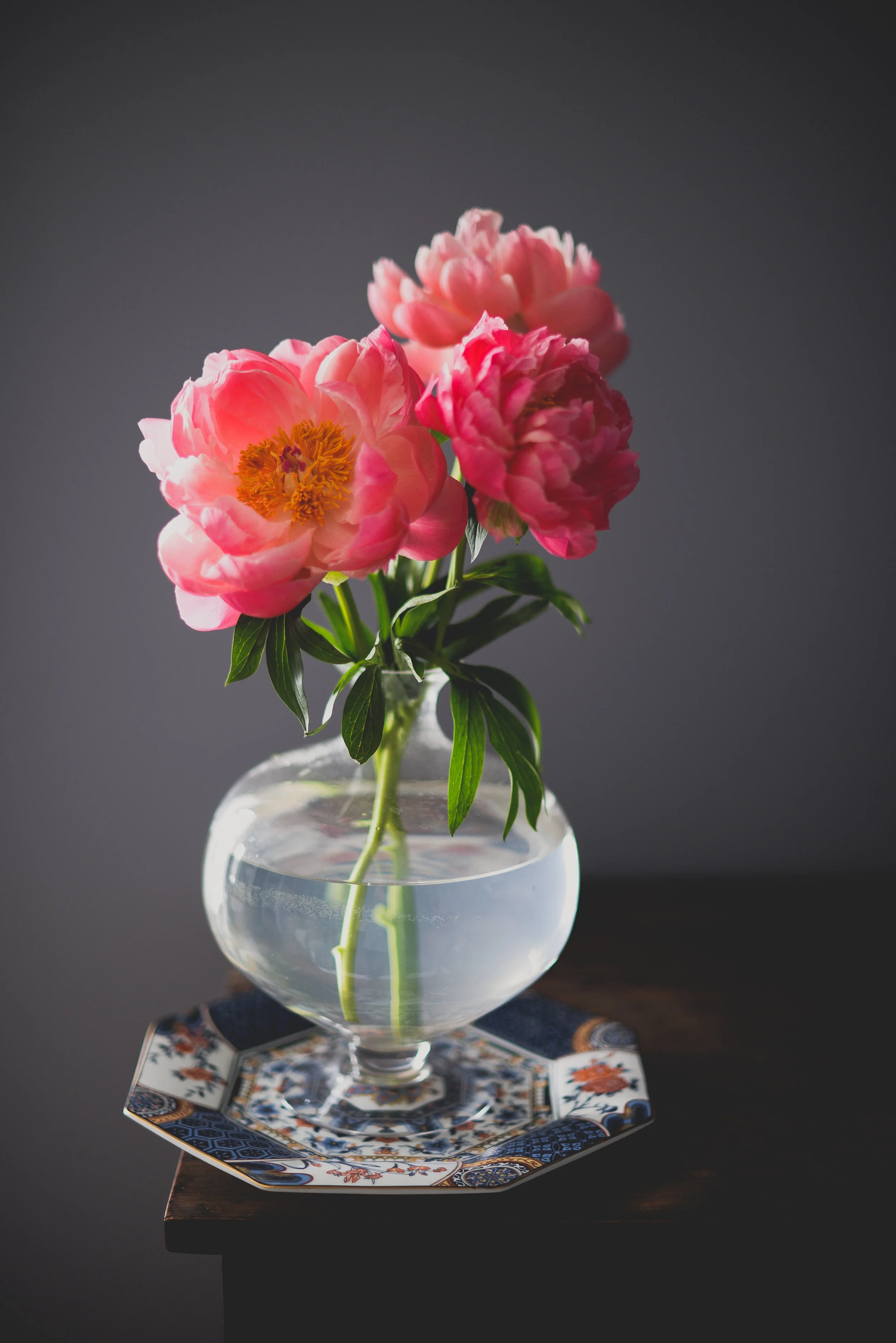 I'm interested in the poetry of waiting and in waiting poetically. We spend so much of our lives waiting, and there are so many stances, so many ways to wait. Right now we, in Edmonton, are waiting for spring. (The rain just washed away the last of the snow in our yard). I'm waiting for spring by going to the florist. (The Coral Charm peonies in this post are from Panda Flowers). I'm finding ways to enjoy the waiting.