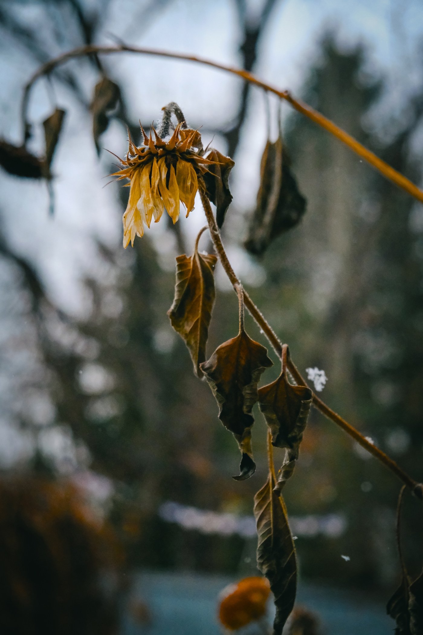 Photos: taken by me, as always, a human, in my backyard this past week with my Fujifilm Xt4, duct taped together and everything. Spring snow with last year’s sunflowers.