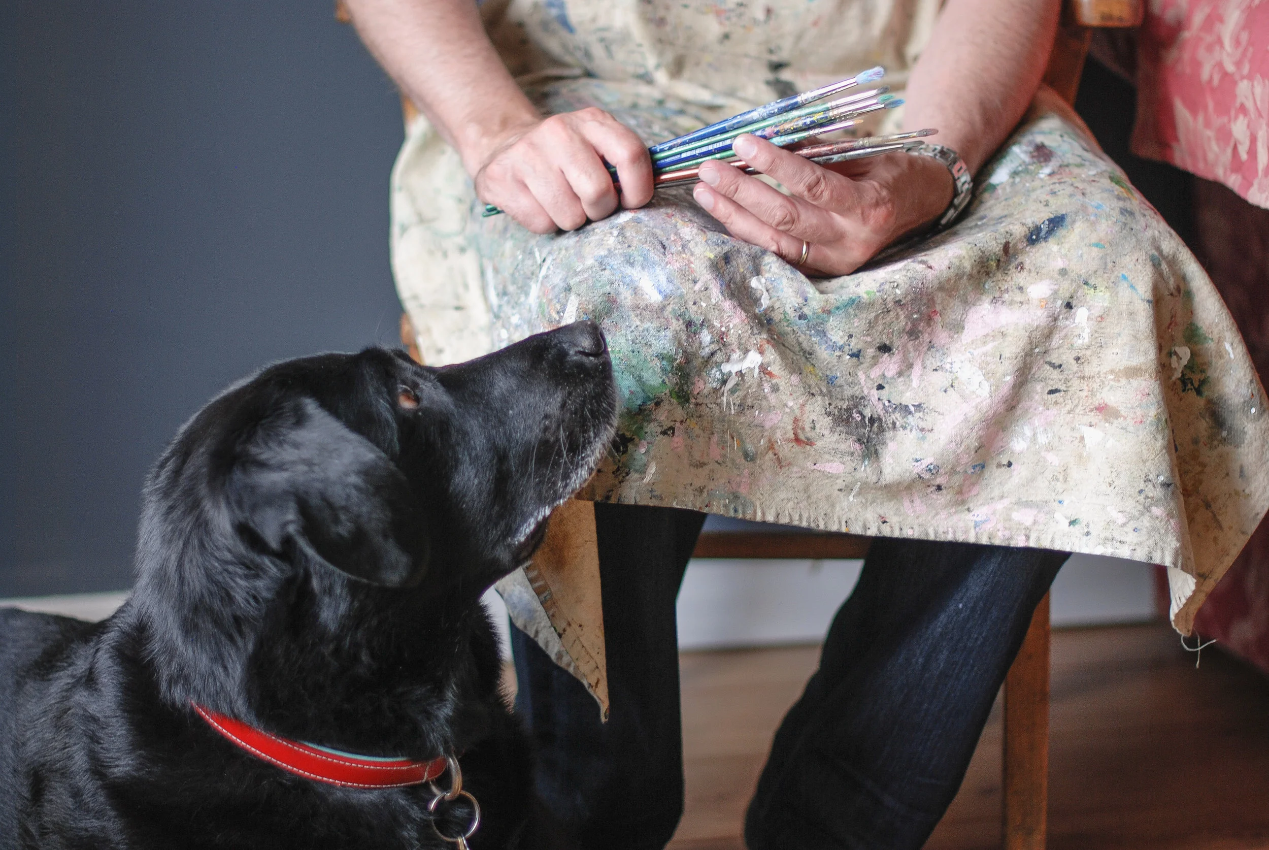 After thirty years of painting primarily still life, Rob decided to challenge himself by painting the figure and also using new methods. Which is, I think, a rather brave thing to do. Most importantly, it's been fun, and this is what motivates him to go down to his quite unglamorous basement studio to paint every morning between 6 and 7am and stay there until 3pm when the dog wants his walk. And then afterwards go back and paint again for a couple more hours on most days. He often talks about taking the weekends entirely off, but rarely does. (There is some math to be done there - 30 years of 10 hour days...)